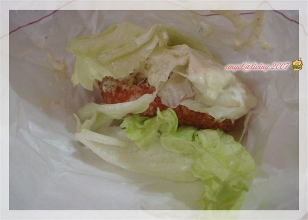 大片大片的青脆高麗菜,包著一塊新鮮的蝦肉餅,上面加了酸甜的法式塔塔醬,打開來的時候被嚇了一小跳,因為青菜真的很多,的確算稱的上是健康滿點的一品!此圖看不出什麼菜,因為一打開,大片的葉菜就被我一片一片的先啃掉了。