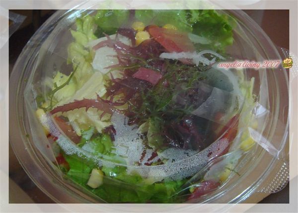 這是啥?這是我尪去拿餐點的時候另外買的「海藻鮮蔬沙拉」有附和風柚子醬,還不賴吃,也是健康滿點的一道!