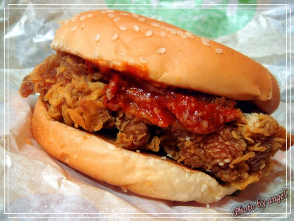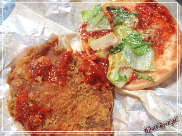 帕瑪森起司雞腿堡的Cheese味很重,喜歡Parmesan的人也許會比較愛吧。Angel個人覺得...它的味道吃起來真的狠像「番茄義大利麵醬口味」的漢堡XD