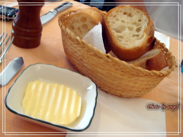 《法式奶油和法國香草麵包》奶油是從法國進口的,不過今天很可惜,Anais沒時間準備青醬(殘念),麵包是台中小有名氣的羅娃麵包(註1),就在香妍的隔壁轉角而已~真的很好吃,而且Anais會一直問大家要不要續麵包XD