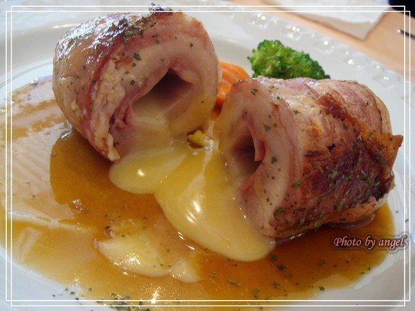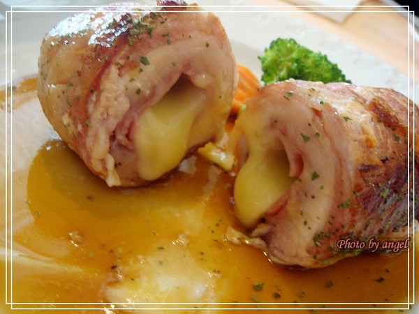 《主菜一:培根起士雞肉捲》好大的一個雞捲,看起來平淡無奇的雞捲,好戲在後頭呢~