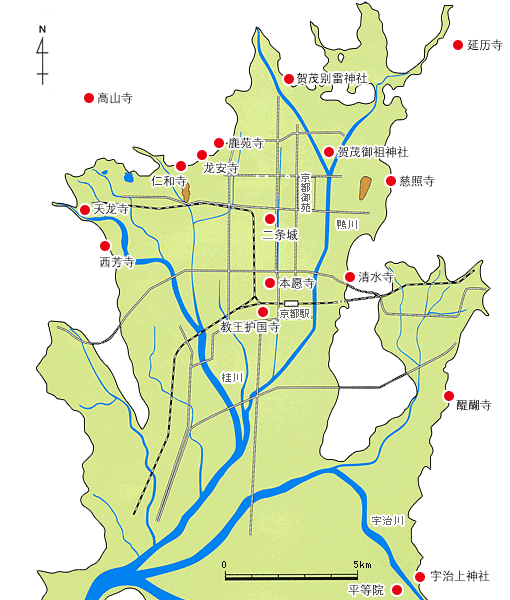 清水寺,銀閣寺,二条城,上賀茂神社,下鴨神社,金閣寺,天龍寺,平等院