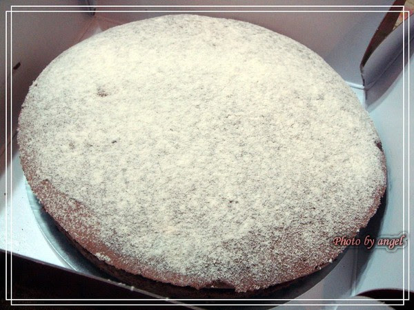 打開來,好大一塊,好像有8吋吧?忘了~上面撒滿了白白的粉,不是糖霜而是奶粉哦~