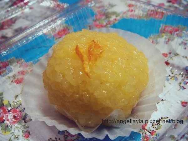 「柚子道明寺」就如櫻餅一般,外觀也是一整個晶瑩剔透,粒粒分明;聞起來有一股柚子的清香,上頭還點綴了些許柚子絲,內餡的豆沙也不是太甜,和著一起吃,不會過膩很對味~它讓我有京都的感覺(((((飄~~~)))))