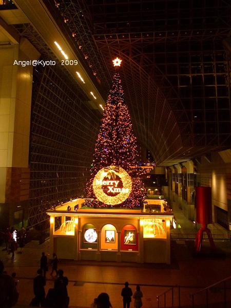 在國外,聖誕節就是他們的新年,每年整個12月份,家家戶戶都掛上七彩霓紅燈炮,門上都掛著聖誕花圈,好不熱鬧!我記得2003年初到紐約過聖誕的光景,就被那一幕幕簡直就像童話故事裏才有的聖誕場景給吸引住,然後就深深的莫名的愛上聖誕節!在抵達京都的第一晚已經是半夜11點多,拉著行李步出熟悉的月台,在京都車站的左側,大概是在五樓的廣場,放置了一棵大型的聖誕樹,白天的時候看似平凡無奇,到了夜晚,聖誕樹上裝飾的霓燈就非常閃耀!儘管寒風刺骨又很刮臉,但是閃亮的聖誕樹搭配著好聽的音樂,很歡樂的聖誕氣氛啊~整個心都暖了起了(飄~)